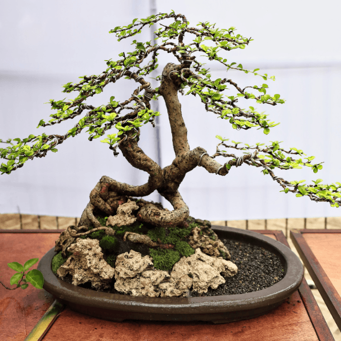 While this popular bonsai tee is native to the Fukien or Fujian region of China, it is not actually a tea tree. The leaves contain no caffeine. The dried leaves are boiled, however, as a remedy for digestion issues and for cough.