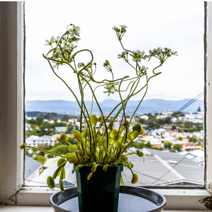 Keep Venus fly traps in moist substrate (it doesn’t need to be soil – it could just be a mix of peat and spaghnum moss), watering from the bottom to keep the soil from being too soggy.