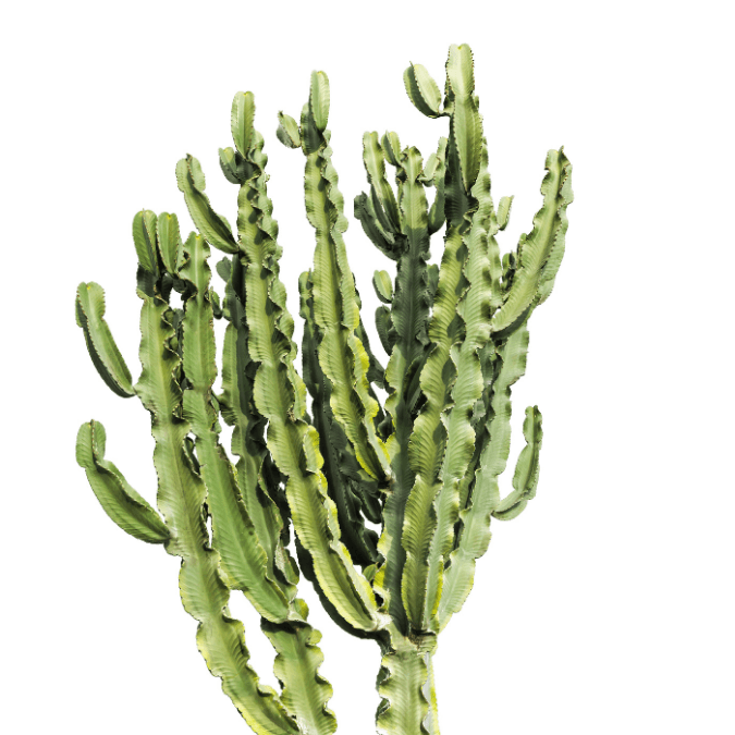 Euphorbia cacti take all shapes and sizes, but they all have one thing in common: the white sap that appears when the surface of the stem is broken. These are great collector’s pieces, but they should be kept away from mischievous kids or pets.