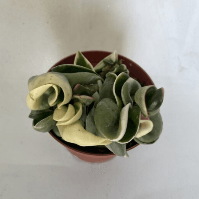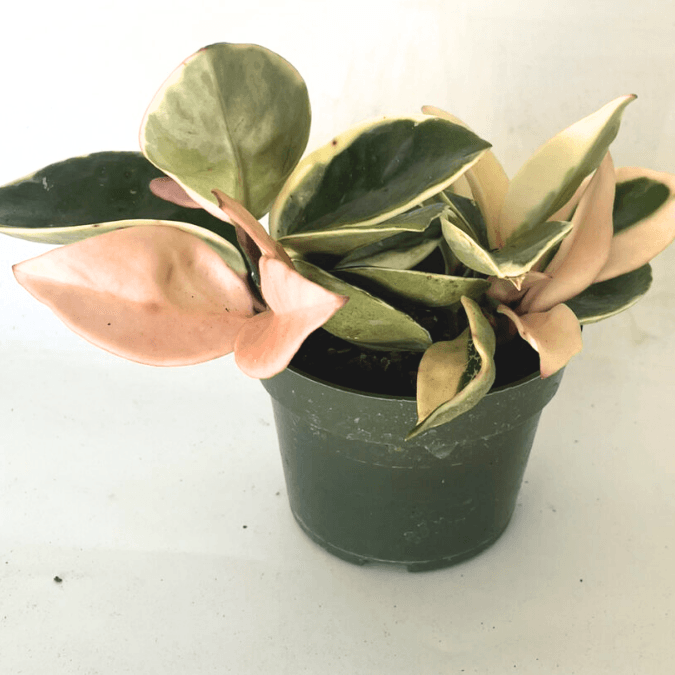 The Krimson Queen Hoya carnosa is stunning when kept in direct sunlight. The variegated leaves take on a strong pink color.